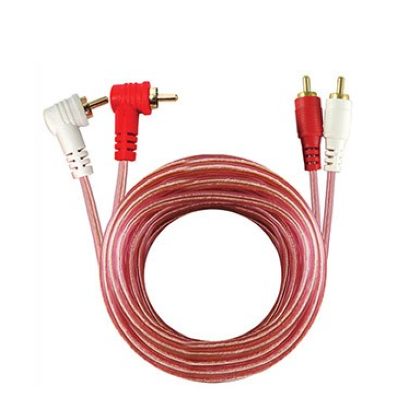 Cables color rojo transparente para audio 2 plugs RCA en "L" a 2 plugs RCA dorado