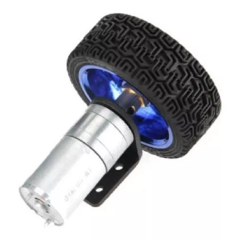 KIT MOTOREDUCTOR CON RUEDA Y ACOMPLAMIENTO 12V 62RPM 4Kgf 32mA