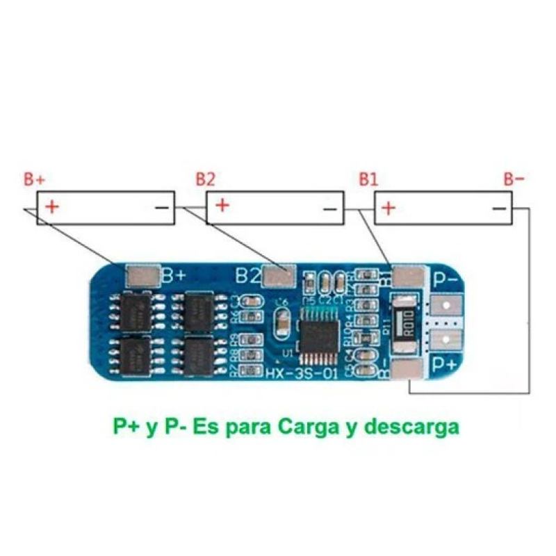 Esta placa de protección de batería de iones de litio de 3 celdas está equipada con un control de batería con sobrecarga, sobre descarga, sobre corriente y protección contra cortocircuitos. Puedes armar un paquete de celdas de la batería li-ion lipo usando el portapilas de 3 18650, 18550, 14500, evitando daños durante la carga o la descarga y prolongando su vida útil.